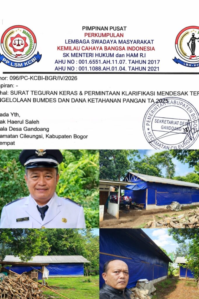 Bogor – Dugaan penyimpangan pengelolaan Badan Usaha Milik Desa (BUMDes) di Desa Gandoang, Kecamatan Cileungsi, Kabupaten Bogor, kini memasuki babak yang lebih serius dan mengkhawatirkan. Sorotan tidak lagi sekadar pada tata kelola, tetapi telah mengarah pada dugaan penyalahgunaan hasil usaha BUMDes yang nilainya fantastis. Lembaga Swadaya Masyarakat Kemilau Cahaya Bangsa Indonesia (LSM KCBI) Cabang […]