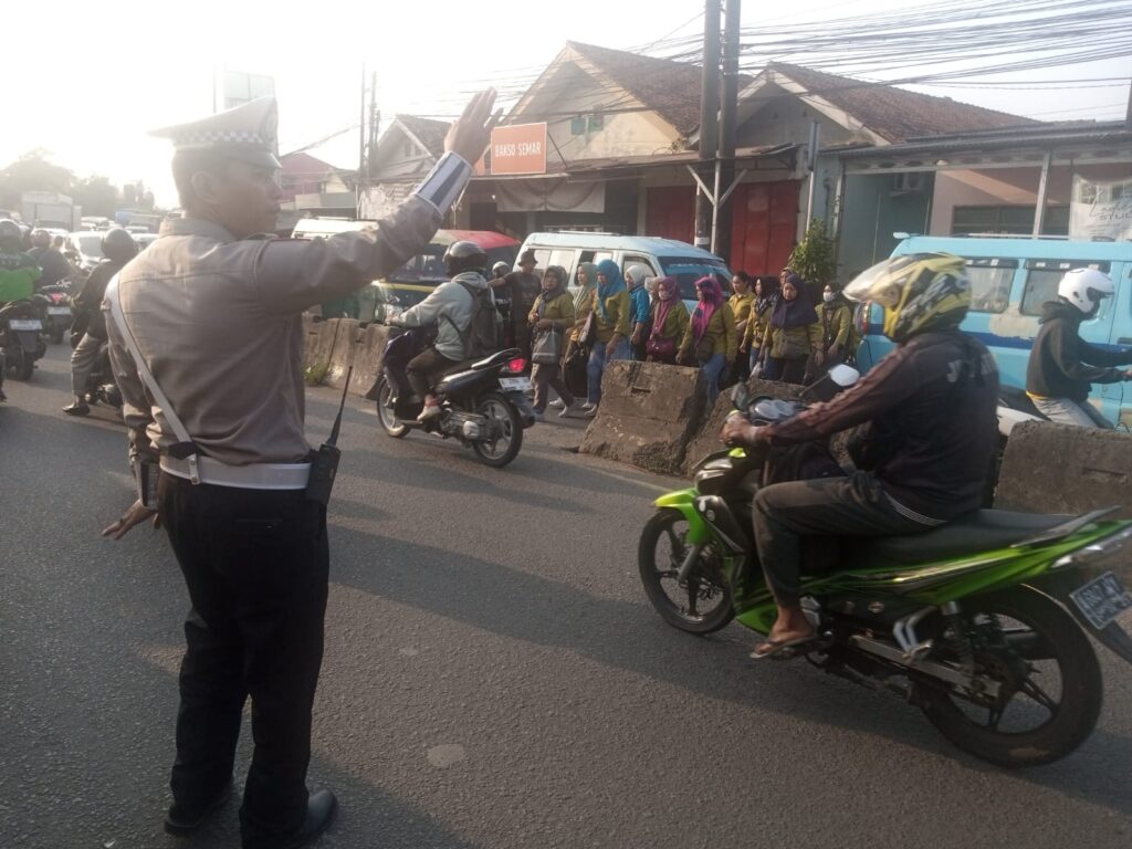 Polsek Cikupa Laksanakan PECAK, Atur Lalu Lintas Pagi Hari di Pertigaan Columbus