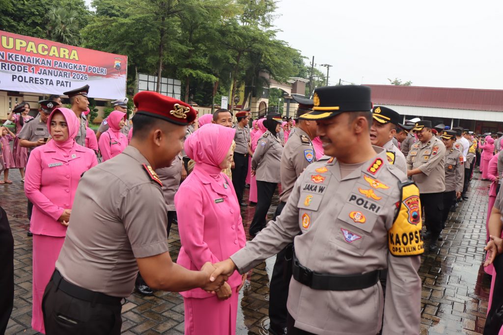 AlapalapNews.com– Pati-  Polresta Pati menggelar Upacara Korps Raport Kenaikan Pangkat Perwira dan Bintara periode 1 Januari 2026 pada Rabu (31/12/2025) pagi. Upacara berlangsung khidmat di halaman Mapolresta Pati dan dipimpin langsung oleh Kapolresta Pati Kombes Pol Jaka Wahyudi, S.H., S.I.K., M.Si. Upacara tersebut diikuti oleh seluruh personel Polresta Pati serta Kompi 4 Yon A Pelopor