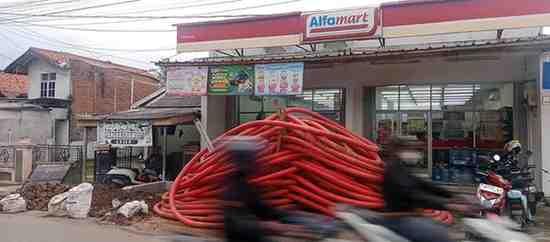 kepala toko Alfa Mart sepanjang jalan raya jatiwaringin kearah buaran jati. mengucapkan, sangat menganggu sekali ya adanya kabel di depan toko Alfa ini karena tempat parkir halaman saya tertutup para konsumen, adanya kabel Merah PLN tersebut, jadih omset pemasukan ataw berkurang.