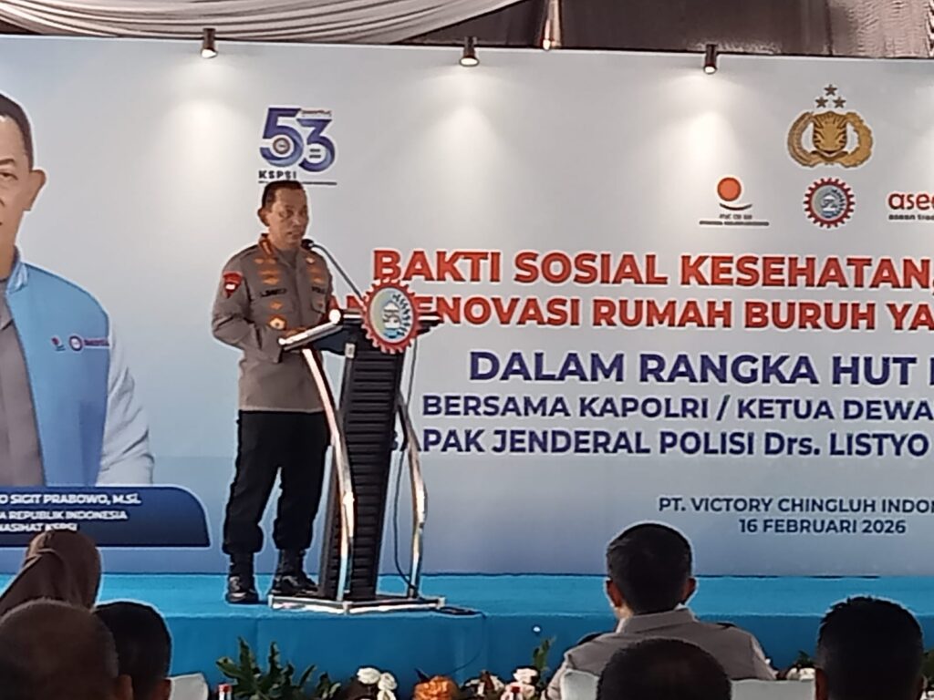 Kabupaten Tangerang – Kapolri Jenderal Listyo Sigit Prabowo menghadiri kegiatan bakti sosial kesehatan dalam rangka HUT Konfederasi Serikat Pekerja Seluruh Indonesia (KSPSI) ke-53. Kegiatan bakti sosial meliputi cek kesehatan, donor darah, dan renovasi rumah buruh