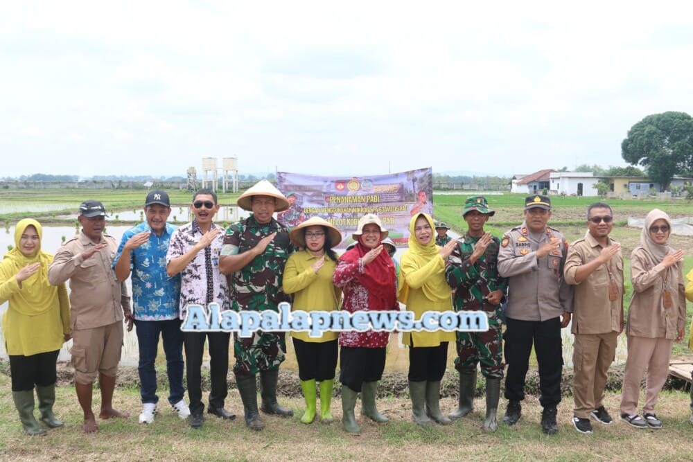 PATI, AlapalapNews.com — Dalam upaya memperkuat ketahanan pangan nasional dan meningkatkan produktivitas pertanian, Kodim 0718/Pati melalui Koramil 16/Jaken melaksanakan kegiatan penanaman padi menggunakan teknologi mikroba PA 63 WD 05 Pati di lahan demplot pertanian milik Kodim, Desa Sidomukti, Kecamatan Jaken, Kabupaten Pati, Selasa (4/11/2025).