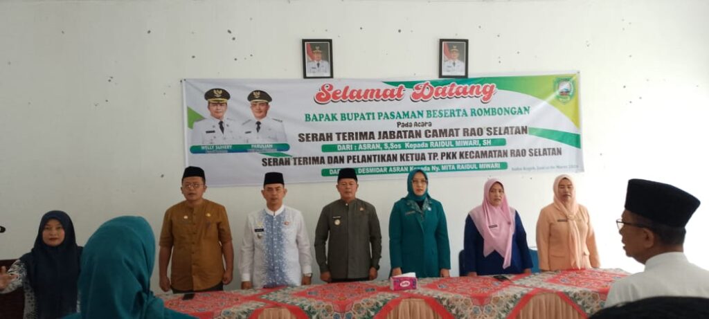 Selain Sertijab camat, pada kesempatan tersebut juga dilaksanakan pelantikan ketua TP PKK Kecamatan Rao selatan Ny.Mita Raidul Miwari oleh ketua TP PKK Pasaman Ny Lusi Welly Suheri dan selanjutnya juga digelar Serah terima ketua Pengurus TP PKK kecamatan Rao selatan dari Ny Desmidar Asran ke pada Ny.Mita Raidatul Miwari.