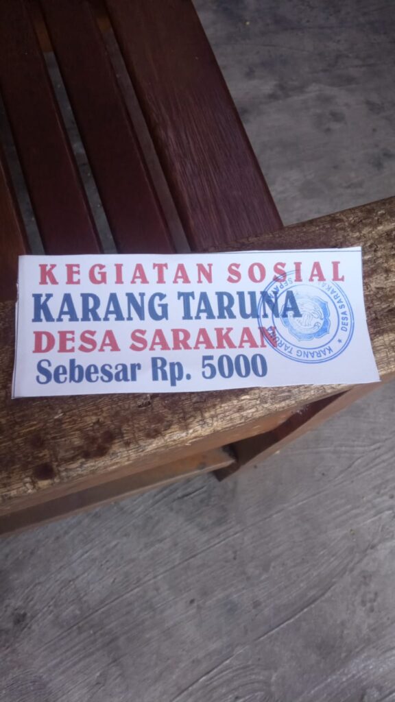 Tangerang – Dengan adanya kupon penarikan retribusi kegiatan sosial karang taruna desa sarakan kecamatan sepatan, Ketua DPD LSM Komando mempertanyakan progres kegiatan sosial dalam apakah kegiatan tersebut ,..?