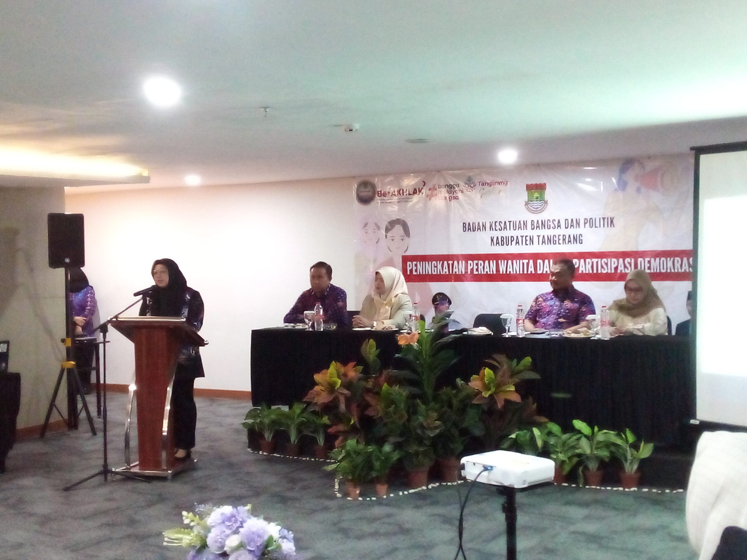 Tangerang – Wakil Bupati (Wabup) Tangerang, Intan Nurul Hikmah mengajak kaum perempuan untuk cerdas dan berani bertindak untuk kebaikan bersama. Hal tersebut diutarakan Wabup Intan saat membuka acara sosialisasi Peningkatan Peran Wanita Dalam Partisipasi Demokrasi yang dilaksanakan oleh Badan Kesbangpol Kab. Tangerang di Qubika Boutik Gading Sepong, Kamis (05/02/26)