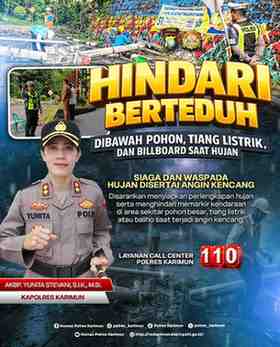 Kapolres Karimun, AKBP Yunita Stevani, S.I.K., M.Si mengingatkan agar masyarakat tidak berteduh di bawah pohon besar, tiang listrik, maupun papan reklame (billboard) karena berisiko tinggi mengalami kecelakaan akibat tumbang atau tersambar petir.