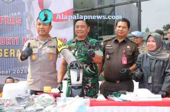 Alapalapnews.com, Kota Tangerang – Pemerintah Kota Tangerang bersama Polres Metro Tangerang Kota dan Badan Narkotika Nasional (BNN) kembali menunjukkan sinergi yang kuat dalam memberantas narkoba dengan melakukan pemusnahan barang bukti Narkotika, Psikotropika, dan Bahan Adiktif Berbahaya lainnya di Halaman Polres Metro Tangerang Kota, dalam Konferensi Pers, Rabu 24 September 2025.