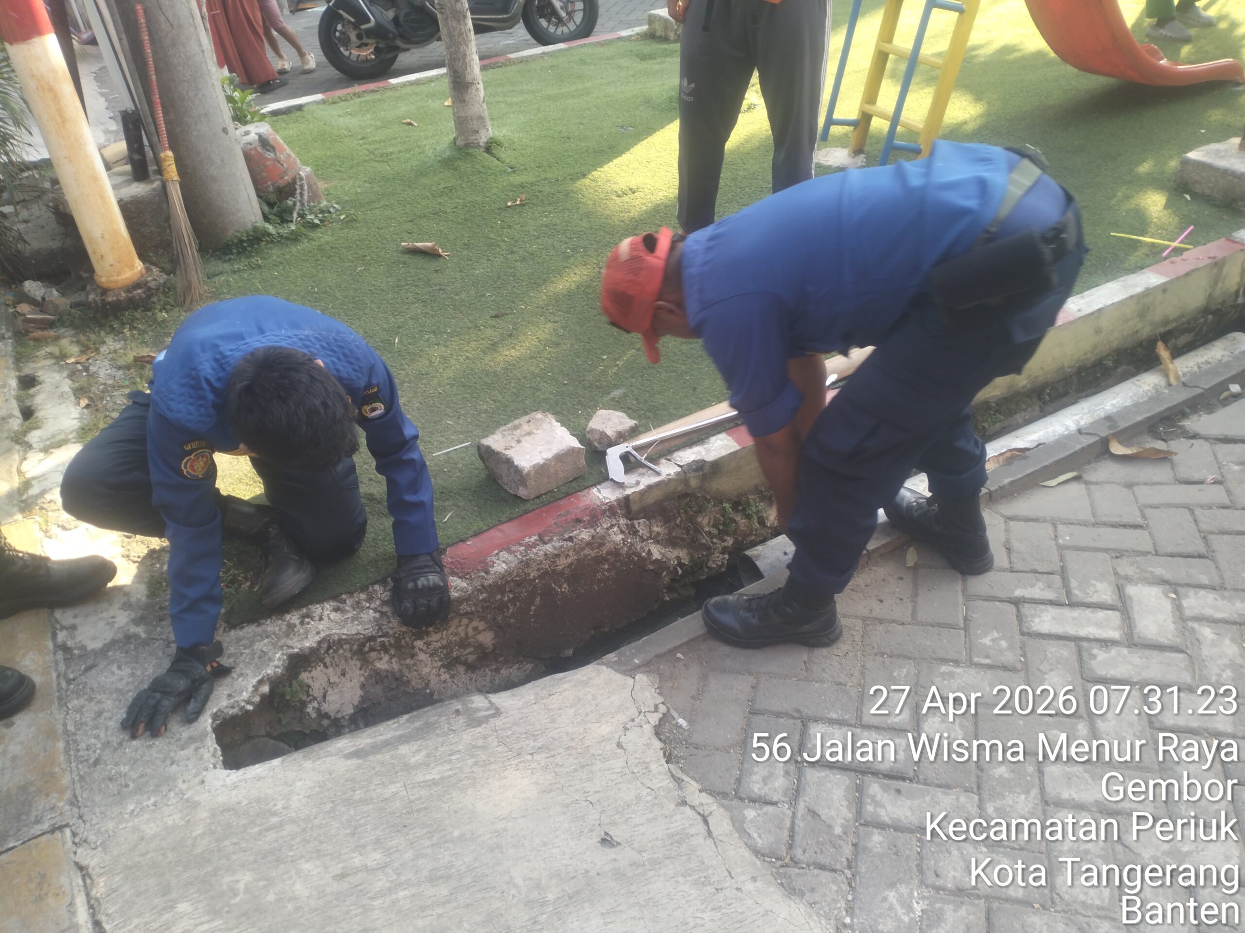 Tangerang – Tim Rescue Dinas Pemadam Kebakaran dan Penyelamatan periuk Kota tangerang kembali menunjukkan respon cepat dalam menindaklanjuti laporan masyarakat. Kali ini, laporan terkait keberadaan seekor ular berjenis sanca yang masuk ke area gorong gorong taman bermain.