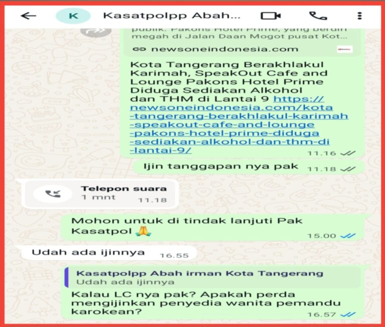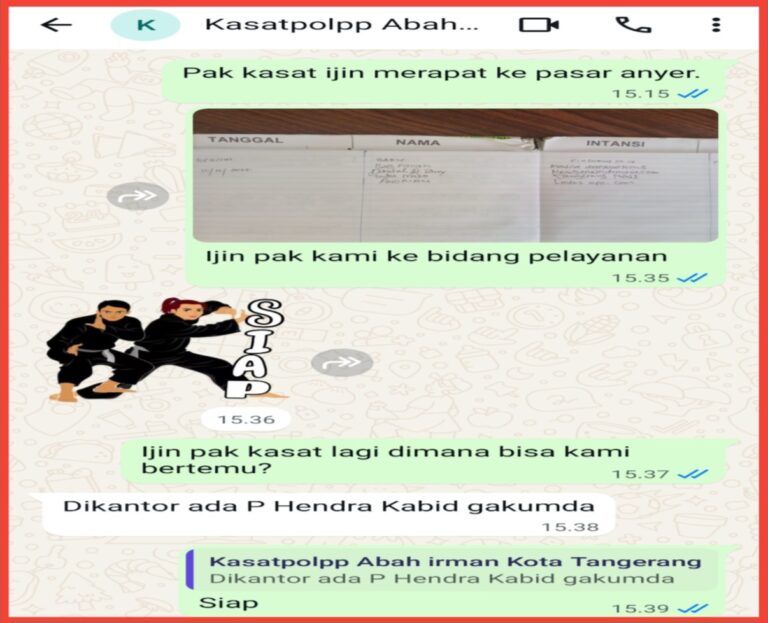 Dalam percakapan Tim Media, “Mohon untuk ditindak lanjuti Pak Kasatpol” Balasan R. Irman dengan singkat dan cetus “Udah ada ijinnya,”ucapnya.