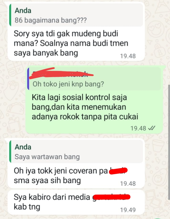 Salah satu oknum media Berinisial RI, mengucapkan, untuk toko jenny coveran pak Bi sama saya.