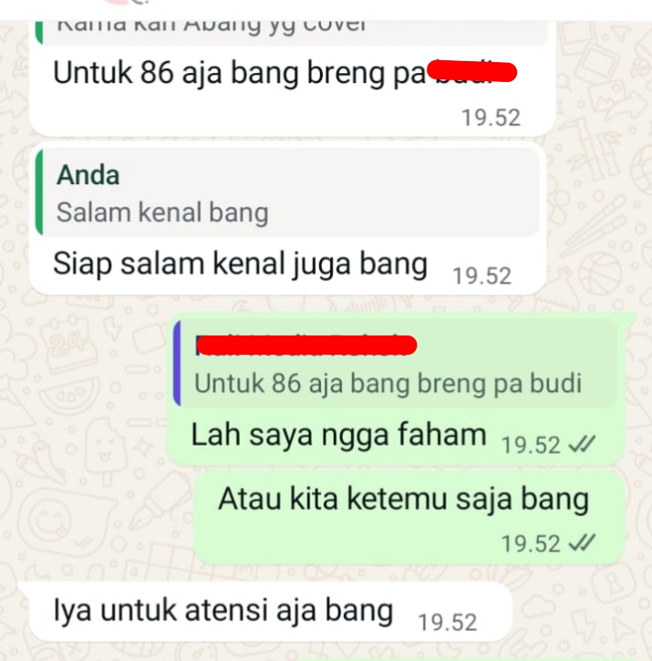 ” Untuk 86 bareng pa Bi untuk atensinya aja, ucapnya via pesan singkat WhatsApp singkat WhatsApp.