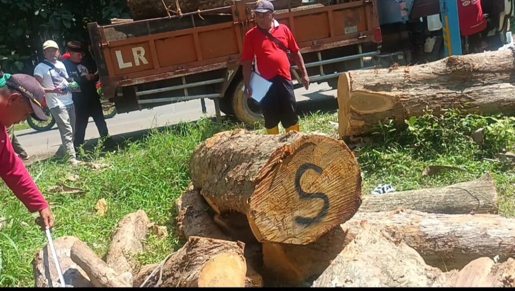 Pada Senin (13/04/2026), di lokasi terlihat sejumlah pekerja melakukan proses pengangkutan kayu jati yang sebelumnya telah lama tumbang. Namun, warga menilai terdapat kejanggalan karena posisi pohon hanya berjarak sekitar dua meter dari bahu jalan, yang umumnya berada di luar kawasan hutan negara.