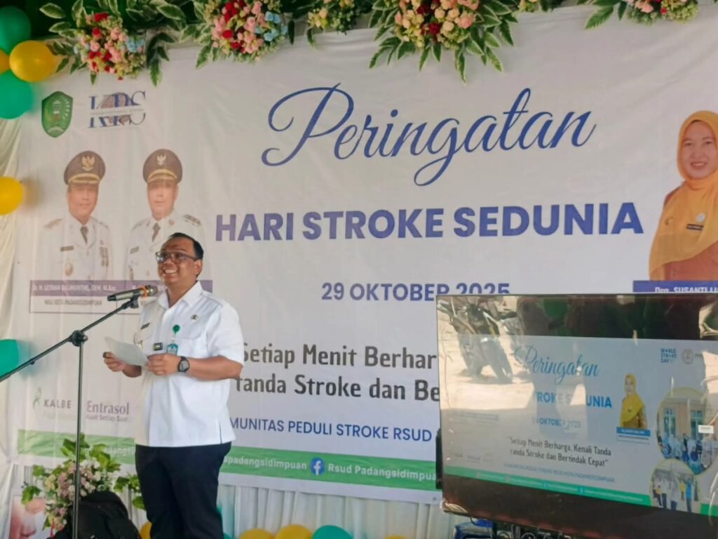 Padangsidimpuan – AlapalapNews.com, Wakil Wali Kota Padangsidimpuan, H. Harry Pahlevi Harahap, menghadiri peringatan Hari Stroke Sedunia yang mengusung tema “Setiap Menit Berharga, Kenali Tanda-Tanda Stroke dan Bertindak Cepat”, bertempat di Rumah Sakit Umum Daerah (RSUD) Kota Padangsidimpuan, Rabu (29/10/2025).
