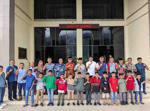 Pasaman (Sumbar), alapalapnews.com — Wakil Bupati Pasaman, Parulian, secara resmi melepas keberangkatan kontingen Sekolah Sepak Bola (SSB) Mandiangin FC Nagari Padang Gelugur untuk mengikuti Turnamen Andre Rosiade Cup U-10 dan U-12. Prosesi pelepasan yang berlangsung khidmat ini dipusatkan di halaman Kantor Bupati Pasaman dengan dihadiri oleh jajaran pengurus KONI, ASKAB PSSI Pasaman, Kabag Kesejahteraan Rakyat, Kepala Dinas Pendidikan, serta Kepala Dinas Pemuda, Olahraga, Kebudayaan, dan Pariwisata (Disporabudpar) Kabupaten Pasaman serta para orang tua atlet.